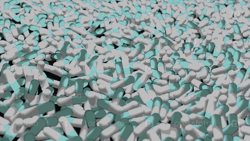 Много таблеток на черном фоне. Дизайн. Многие 3D-таблетки движутся по поверхности. Волна таблеток. Пилюли, назначенные врачами или антидепрессанты