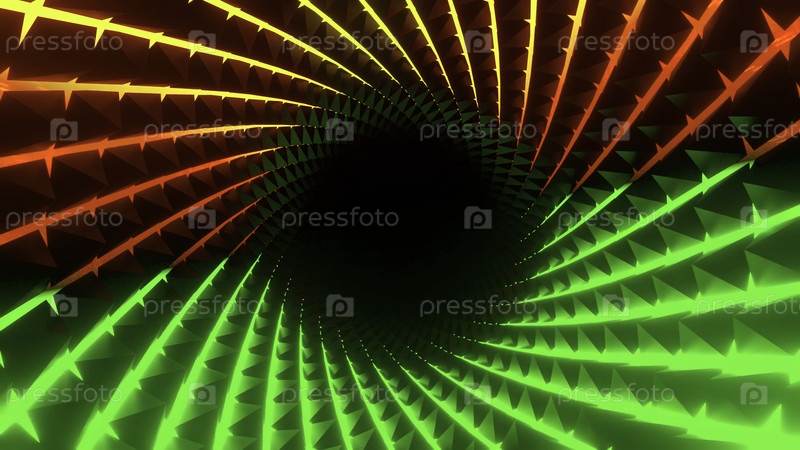 Зеленый фон.Дизайн.Яркий туннель в абстракции движется вперед по вращающимся кругам.Высокое качество 4k кадров