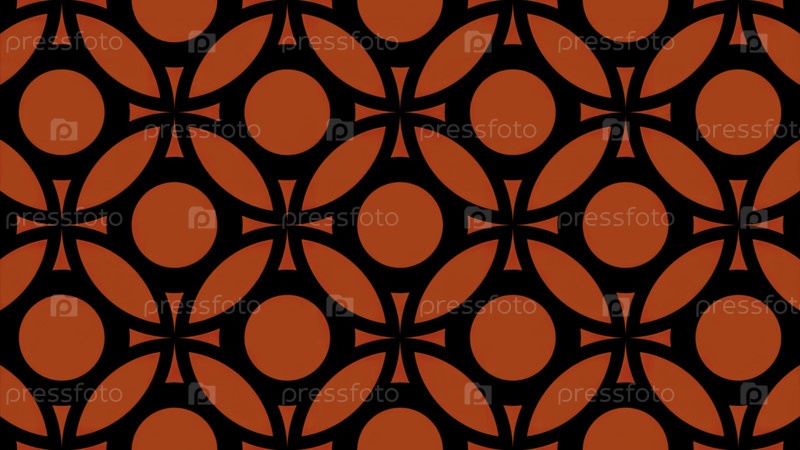 Абстрактный красно-черный цветовой калейдоскоп в гипнотическом движении. Дизайн. Ряд цветных кругов и ромбов на меняющемся фоне