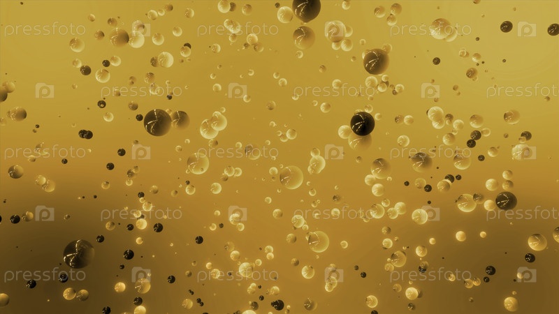 Абстрактные пузыри, хаотично протекающие на красочном фоне.Движение.Маленькие сферы, плавающие в невесомости