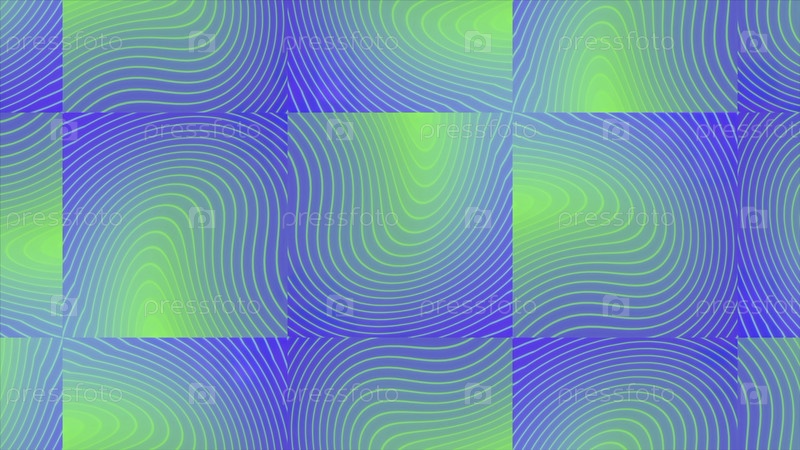 Зеленые и синие квадраты. Движение. Яркая анимация с размытыми квадратами, которые мерцают как гипноз. Высококачественные 4k кадры