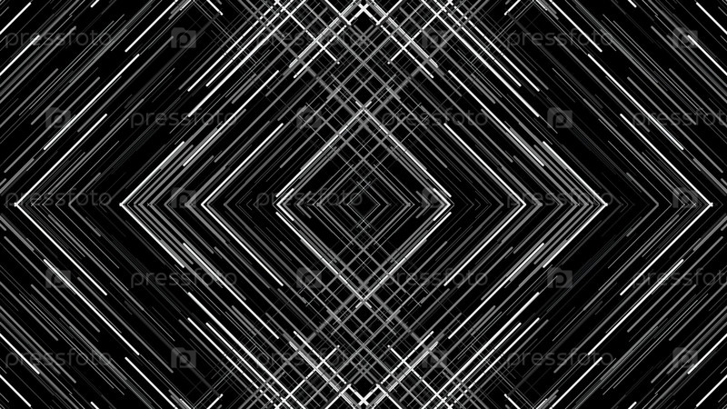 Рисунок с черно-белыми огнями при помехах. Анимация. Треугольный зеркальный рисунок с линиями, движущимися на пересечении, прерываемым шумом
