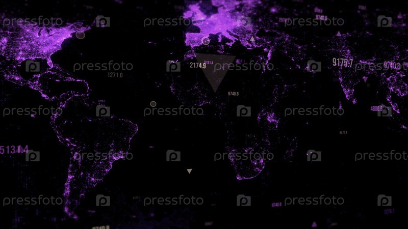 Черный фон. Движение. Ярко-фиолетовые выделенные линии, на которых программы написаны яркими цветами в абстракции
