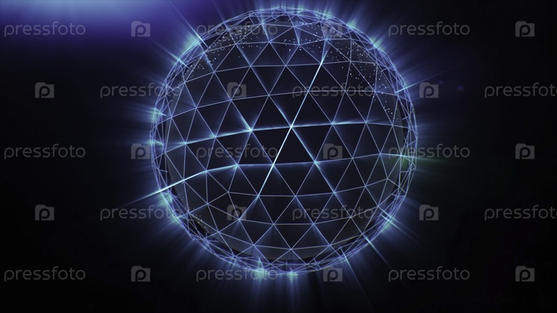 Сфера, глобус и пространство в форме плекса. Сток. Абстрактный геометрический фон с движущимися линиями, точками и треугольниками. Фантастическая абстрактная технология Plexus fantasy. Цикл анимации сферы по стилю петли Плексус. Белые линии на альфа-канал