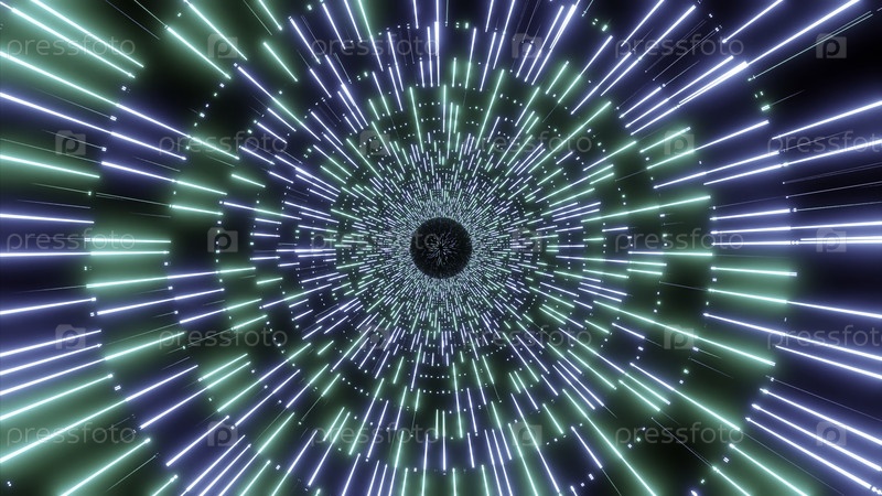 Летающий внутри красочного мигающего неонного туннеля времени и пространства, бесшовная петля. Дизайн. Абстрактный круглый коридор с диско-светками