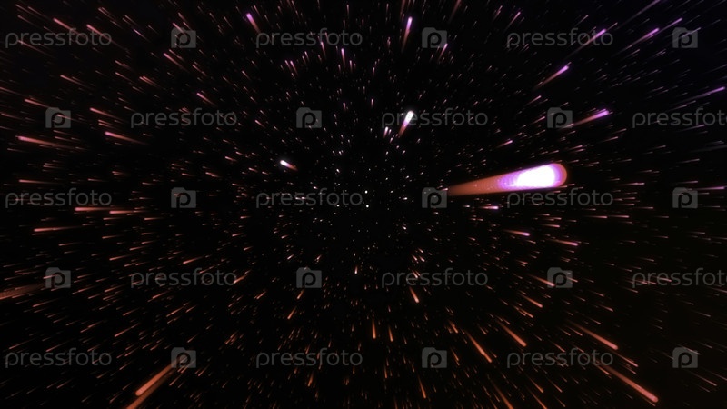 Полет через галактику среди звезд. Движение. Фон космического пространства с медленно летящими маленькими звездами