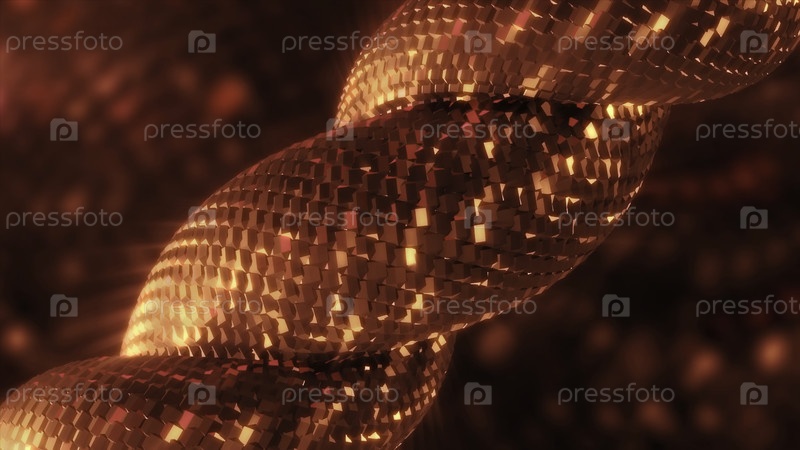 Блестящая спираль движется, вращаясь. Движение. 3D-спирала свертывается в блестящие квадраты. Блестящая спиралка квадратных движений и поворотов