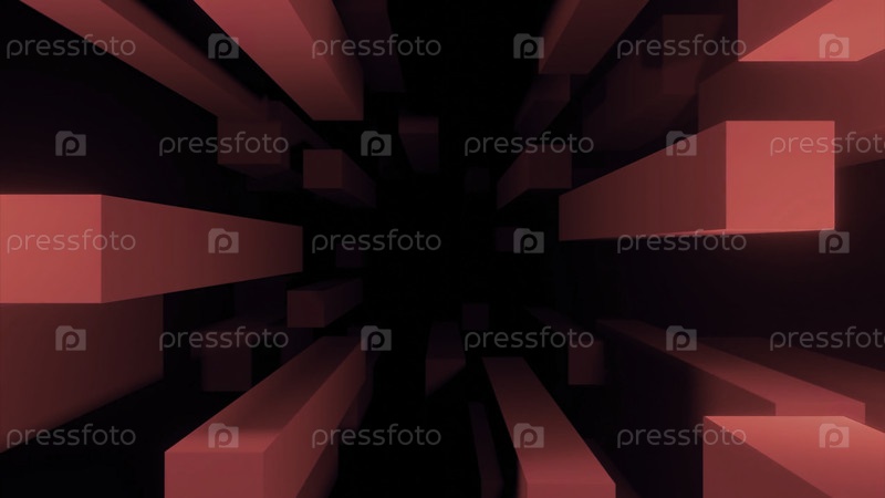 Движение потока прямоугольных трехмерных линий. Дизайн. Геометрические 3D-линии движутся по течению на черном фоне. Погружение в поток летающих прямоугольников