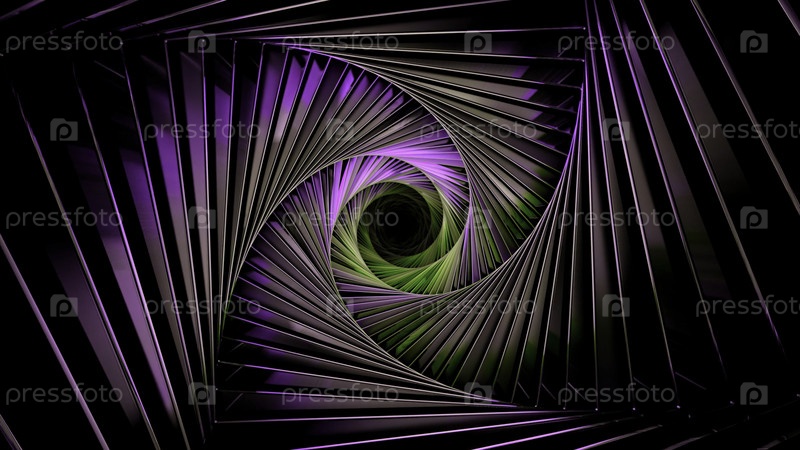Витящийся туннель фрактальной формы. Дизайн. вращающийся, меняющий цвет зигзаговый тоннель с кругом посередине