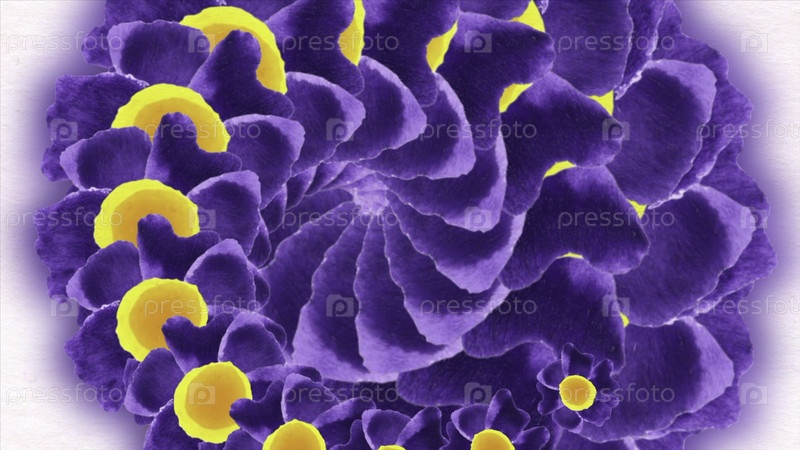 Абстрактные фоны движения CGI высокой четкости идеально подходят для редактирования, светодиодных фондов или трансляции с желтым и фиолетовым фракталом, похожим на цветочное образование в спирали цвета
