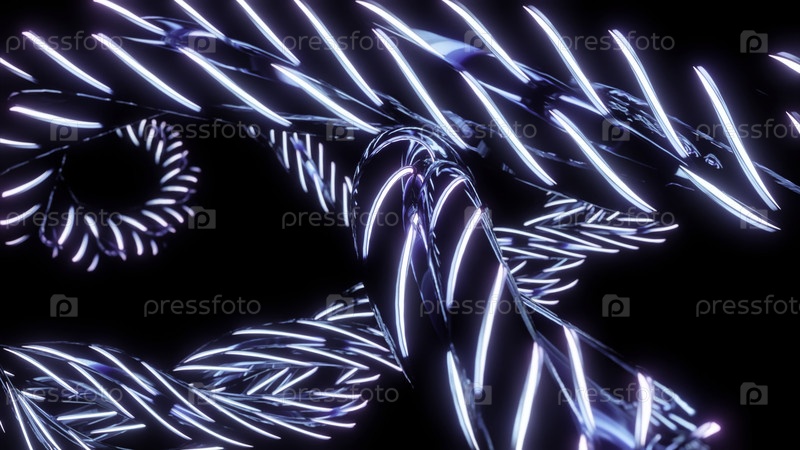 Абстрактные линии оптических волокон на черном фоне. Дизайн. Яркие неоновые синие сигналы быстро передают данные для высокоскоростного подключения к Интернету
