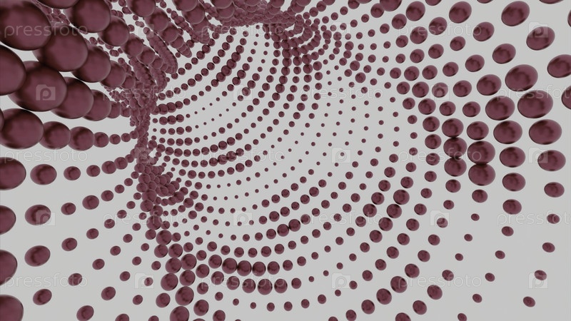 Туннель из множества цветных шаров. Дизайн. Движущийся 3D-туннель с пульсирующими шарами. Тунел из многих пульсирующих шариков на белом фоне