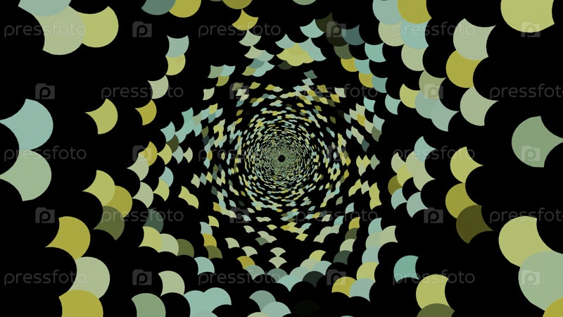 Черный тоннель с яркими декорациями.Дизайн.Многоцветные орнаменты на черном портале, выполненное в компьютерной графике.Высококачественная запись 4k