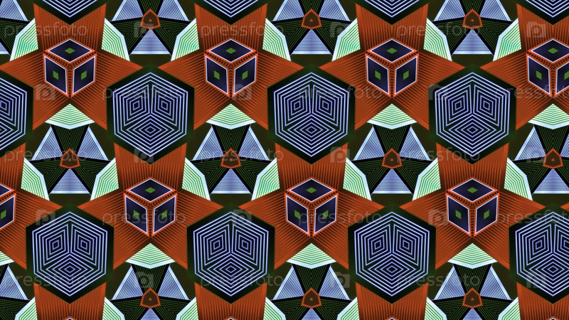 Яркий мигающий рисунок геометрических форм. Движение. Кислотный мигающий рисунок с повторяющимися геометрическими формами. Неонные психоделические фигуры мерцают на ярком анимированном фоне