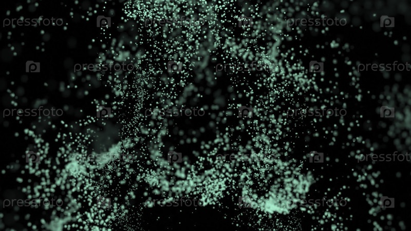 Вихревые потоки частиц на черном фоне. Дизайн. Яркий поток светящихся частиц в вихре. Движущиеся вращающиеся струи частиц