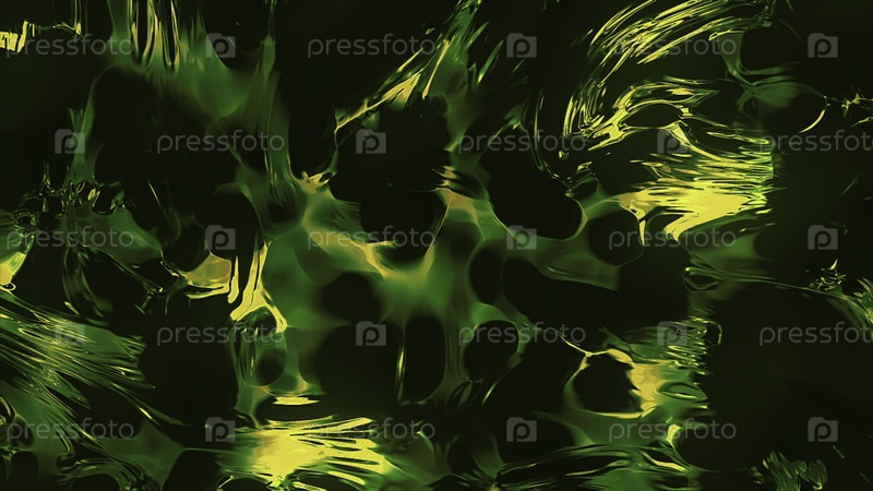 Зелёный фон. Движение. Яркий фон с оттенками зеленого, на котором есть пятна, которые, кажется, распространяются по всей кадре и образуют рисунки в 3D