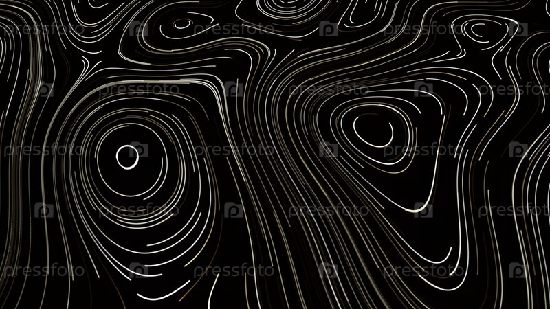 Черный фон. движение. черная 3D-картина, на которой появляются неоново-белые гладкие линии, которые светятся и исчезают