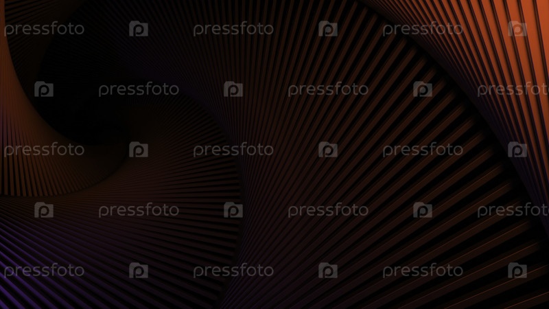 Поворачивающийся 3D-фон с вращающейся полосатой спиралью. Дизайн. Темный фон с вращающимися полосами в темноте. Глубина тёмного пространства с вращающимися спиральными линиями