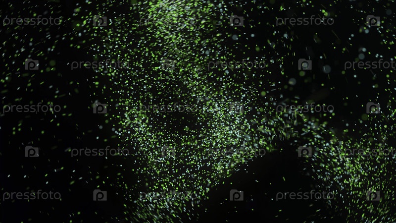 Вращающийся поток красочной пыли на черном фоне. анимация. красивые секины летают в вихревых потоках от прозрачной фигуры на черном фоне. водоворот пыли движется как микшер
