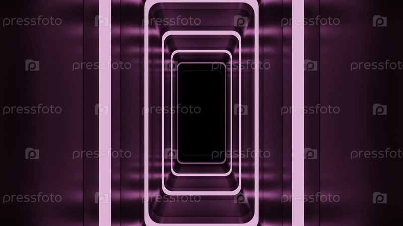 Абстрактный футуристический тоннель, создающий бесконечную перспективу с сияющими фиолетовыми линиями неонового света