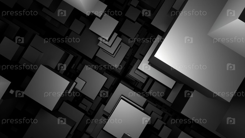 Серый и оранжевый фон. дизайн. квадраты разных размеров, которые составляют коридор в анимации с ярким светом