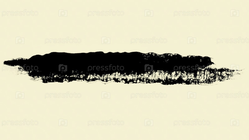 Абстрактная черная краска ручной живописи шрифтом на бежевой влажной поверхности.Анимация.Черная широкая линия, выполненная черной краской, концепция современного искусства