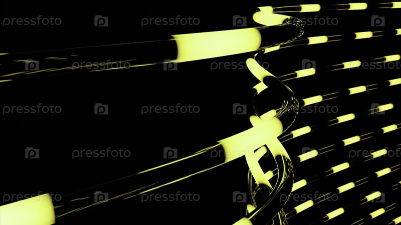 Черные кабели с неоновыми полосками. Дизайн. Трубы или кабели с движущимися потоками энергии. Энергетические ленты, проходящие через кабели на черном фоне