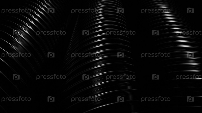 Фон с движущимися трубами и кольцами. Дизайн. Кольца на трубе в темном пространстве. Движение 3D-трубы с колесами на тёмном фоне