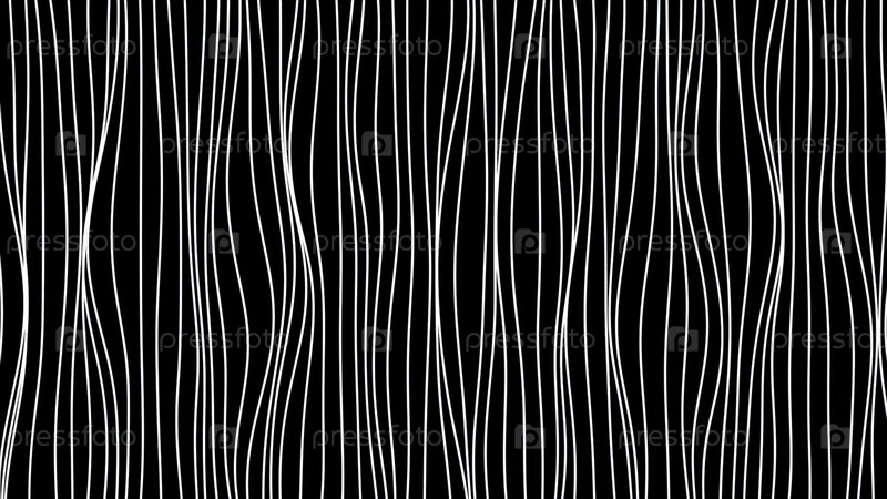 Абстрактные изогнутые белые струны, протекающие на черном фоне, бесшовная петля. Движение. Узкие изгибающиеся линии, монохром