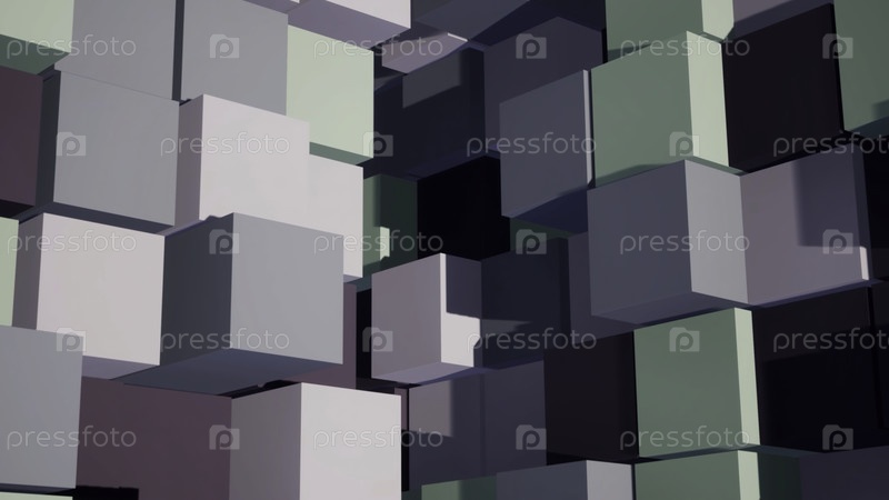 Цветные кубики в абстракции. Анимация. Красочные маленькие коробки, которые перемещаются в 3D-формате