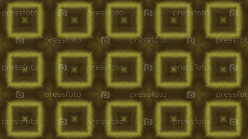 Уникальный калейдоскопический красочный дизайн с мигающими квадратами.Движение.Симметричная повторяющаяся схема с желтыми фигурами