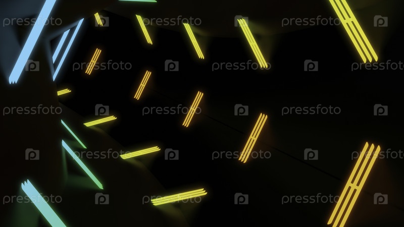 Вождение по темному туннелю с неоновыми линиями Дизайн головокружительный тоннель с многоцветными полосами Неонные трубы в тёмном 3D-туннеле