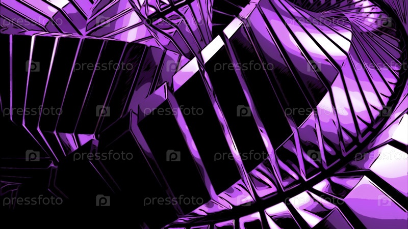Металлические линии скручиваются лентами в спиралях.Дизайн.Металлические ленты в спиральных изгибах 3-мерного пространства.Абстрактная 3D-спирала с металлическими полосами