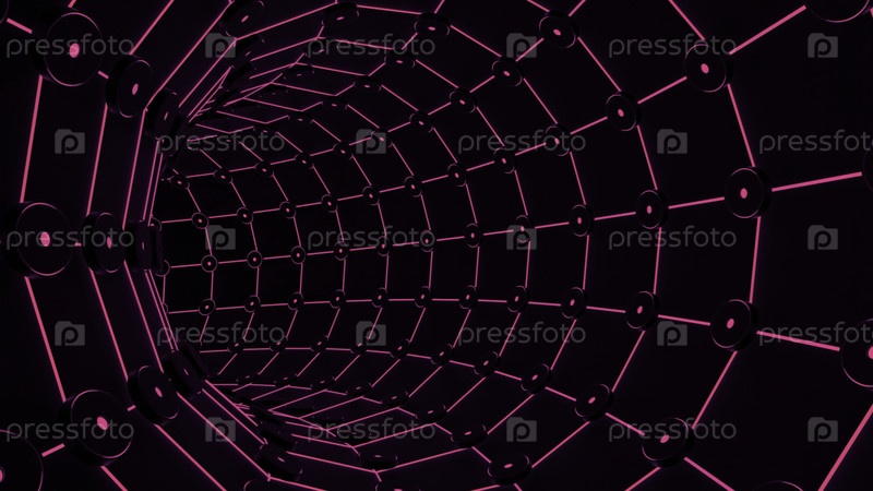 Движение космического тоннеля с сеткой.Дизайн.Туннель в стиле корабля завершается.Движение темного туннеля с нейлоновой решеткой