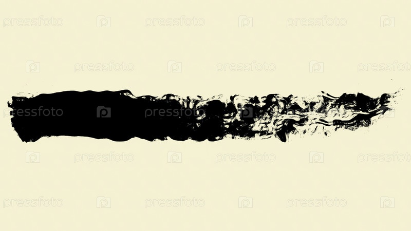 Абстрактная черная краска ручной живописи шрифтом на бежевой влажной поверхности.Анимация.Черная широкая линия, выполненная черной краской, концепция современного искусства
