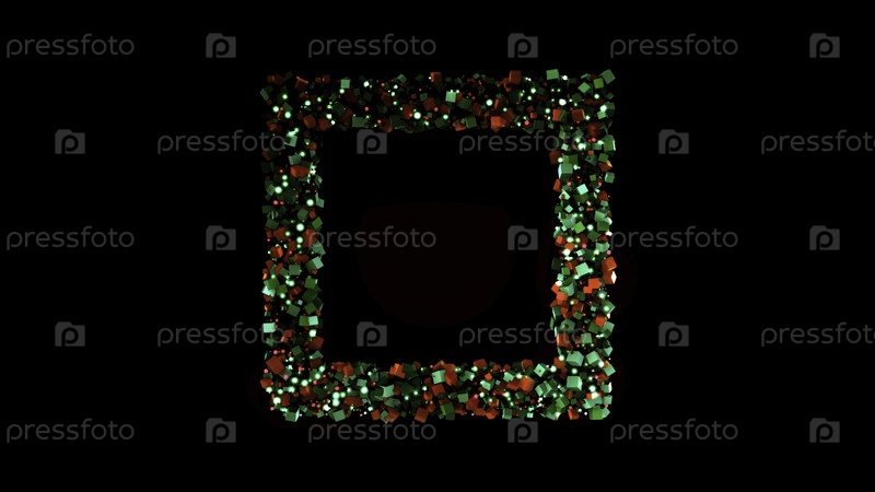 Рождественская рама, сделанная из кубиков и огней. Анимация. Красивая рождественская рамка из зеленых и красных кубиков и огней на черном фоне