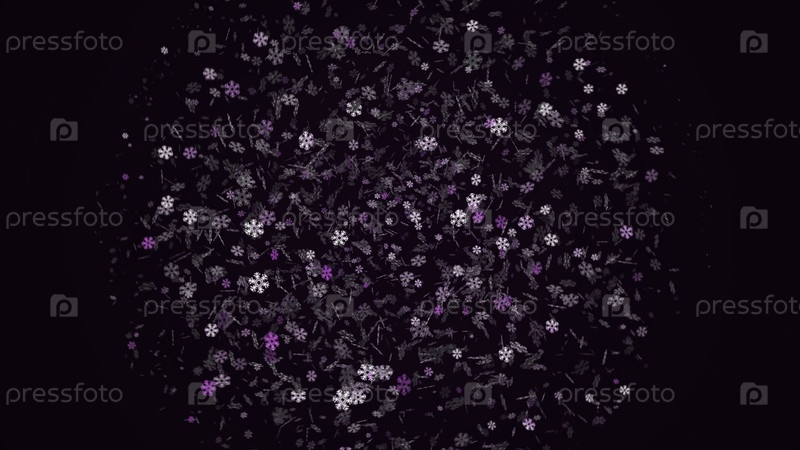 Абстрактный анимированный рождественский фон с красивыми блестящими снежинками, вращающимися на красочном фоне
