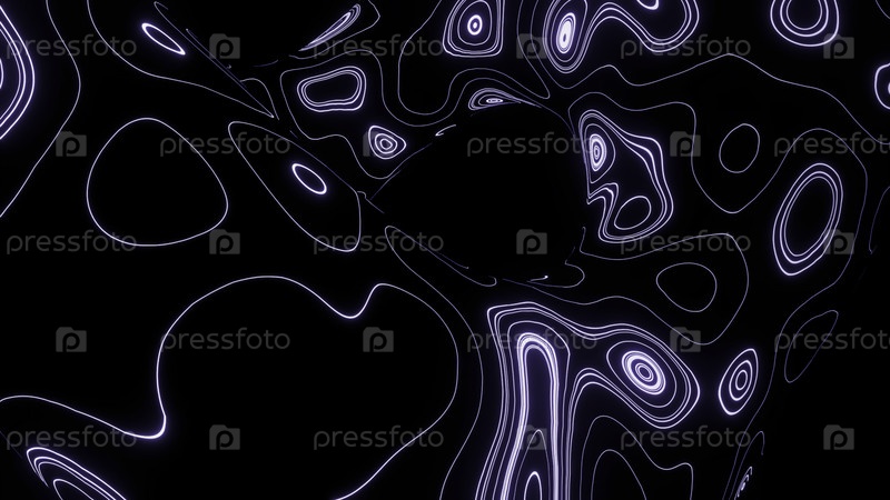 Черный фон.Дизайн.Яркие линии густые с блестящими, весенне-подобными фиолетовыми цветами, горящими внутри линий, которые движутся в разных направлениях