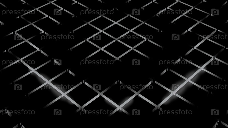 Черно-белый фон с пульсирующими кольцами на квадратном фоне. Дизайн. Пульсирующее движение кругов и решетка позади