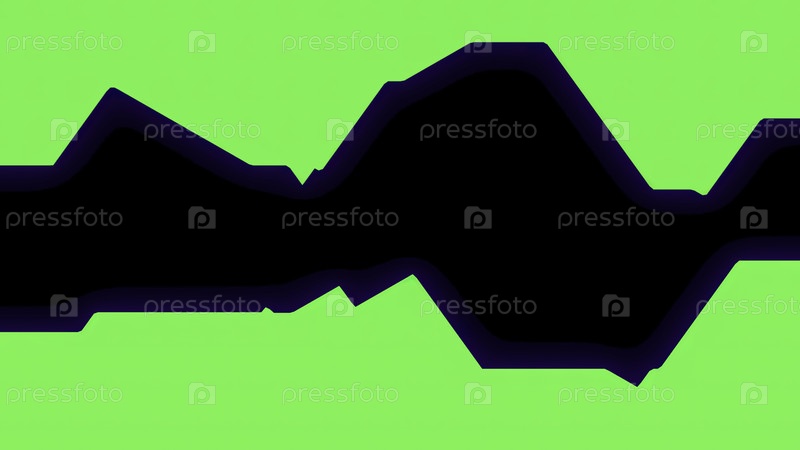 Черная полоса с нерегулярностями и волнистыми движениями. Дизайн. Геометрические волнообразные пятна перемещаются в полосе. Полоска с иллюзией и тенью