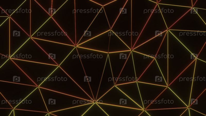 Желтый фон с неоновым освещением. Дизайн. Красно-желтые неонные линии, которые блестят в анимации. Высокое качество 4k кадров
