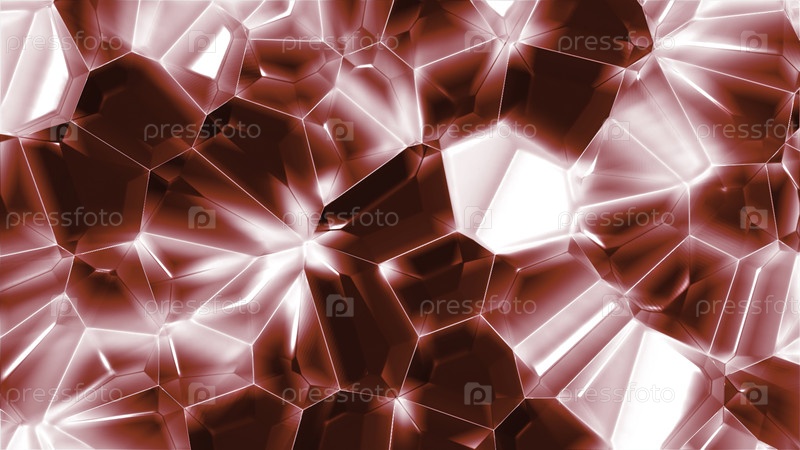 Кристаллические геометрические молекулы. Движение. 3D-геометрические формы с кристаллическим сиянием. Яркие светящиеся молекулы в виде кристаллов