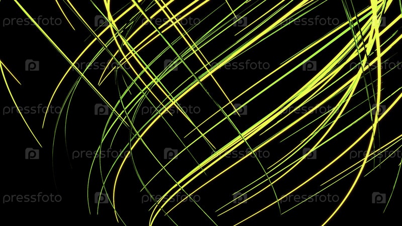 Абстрактные творческие линейные волны, волнистый динамический рисунок. Дизайн. Кривые энергетические узкие полосы, движущиеся вниз изолированными на черном фоне, красивая спираль