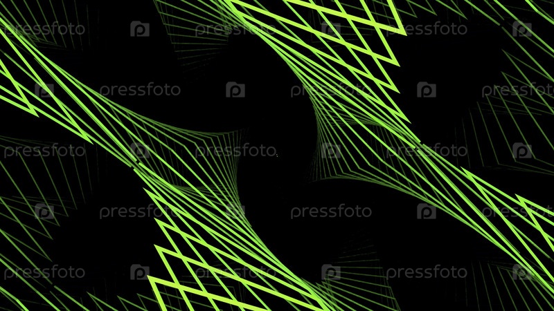 Изгибающиеся линии рамы на черном фоне. Дизайн. 3D-линии быстро перемещаются и размахивают в пространстве. Линии Wireframe с изгибом сетки на черном фоне