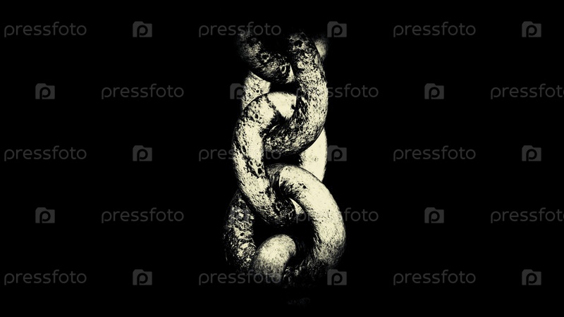 Абстрактный промышленный фон с металлическими большими ржавыми цепями, висящими изолированно на черном фоне