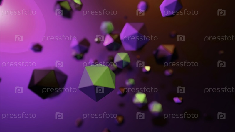 вращающиеся геометрические многоугольники. дизайн. спинирующий поток с геометрическими 3D-полигонами. молекулярный поток в виде геометрических форм
