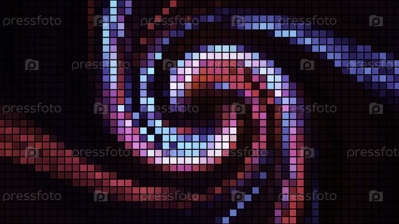 Абстрактный красочный фон со многими рядами крошечных квадратов и движущимся вихрем. Движение. вращающиеся, текущие и изгибающиеся световые полосы, бесшовная петля