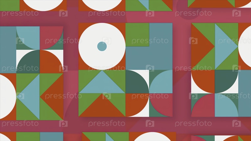 Стильная анимация с красочными геометрическими формами. Движение. Применение в анимации с ярко контрастирующими цветами и формами. Ретро стиль в анимации с геометрическими формами