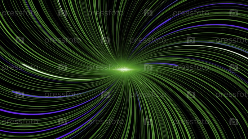 Спираль с пульсирующими изогнутыми линиями. Анимация. Изогнутые линии излучаются от световой точки в виде спирали