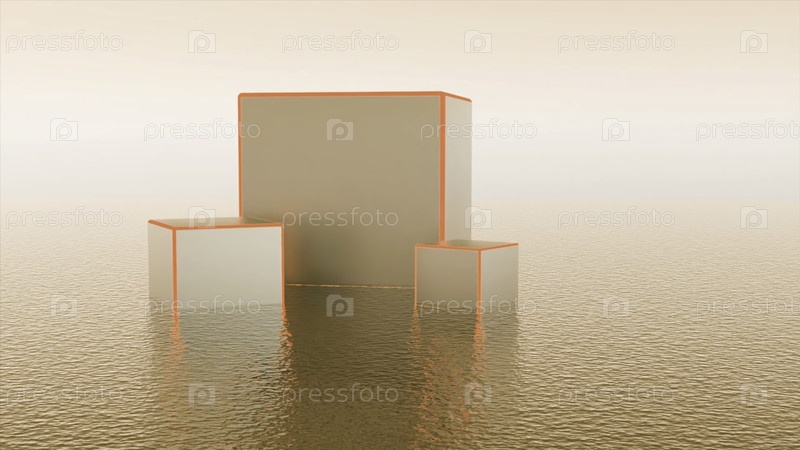 Виртуальная 3D-декорация с кубиками Дизайн Стильный дизайн виртуального пейзажа с кубками разных размеров и неоновыми линиями Красивые кубы с неонными рамами на изолированном фоне